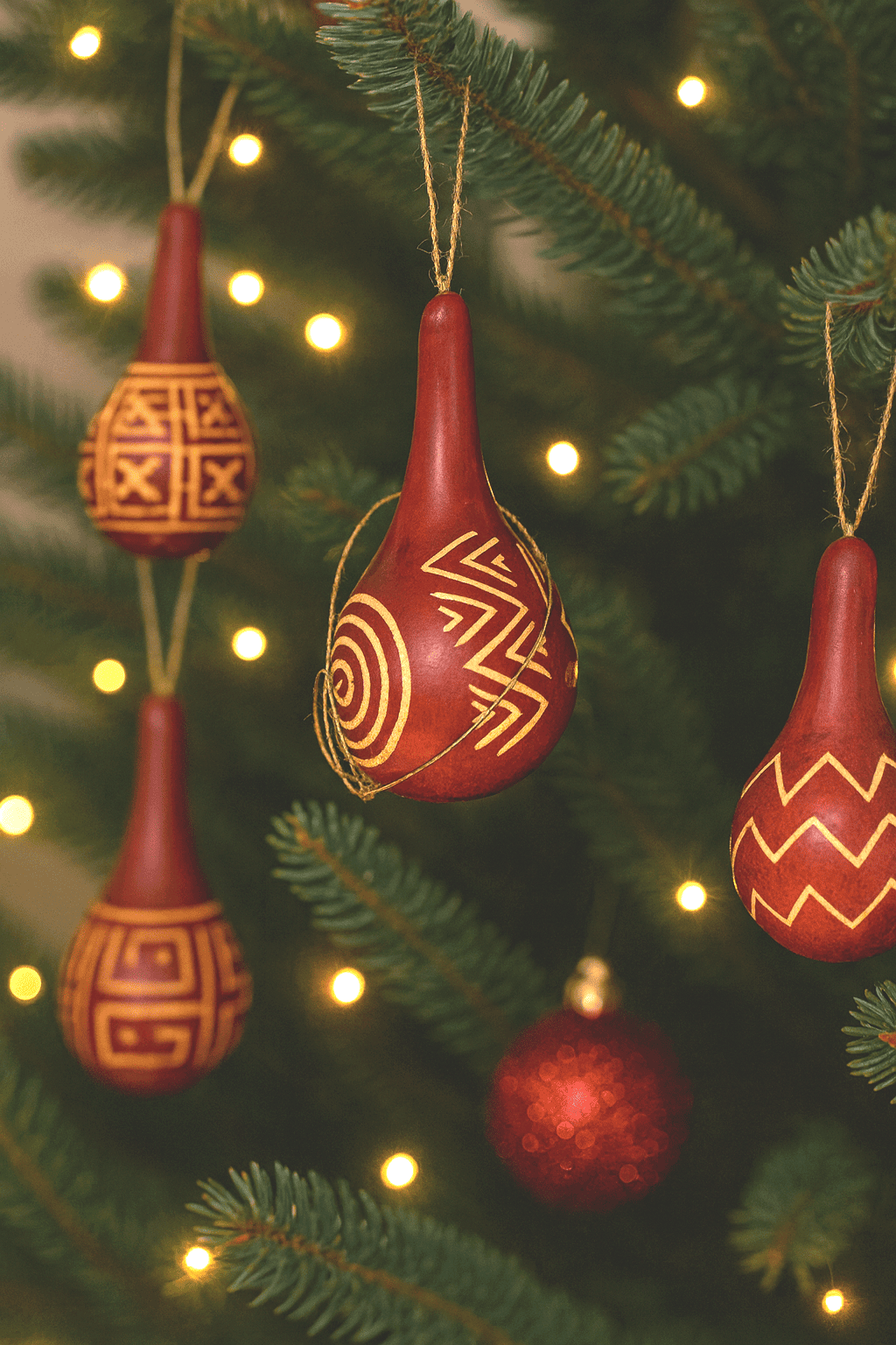 Transformez votre sapin de Noël en une œuvre d’art unique avec nos calebasses décoratives en rouge grenat. Chaque pièce, ornée de magnifiques dessins ethniques, apporte une touche d’exotisme et de chaleur à votre décoration festive.