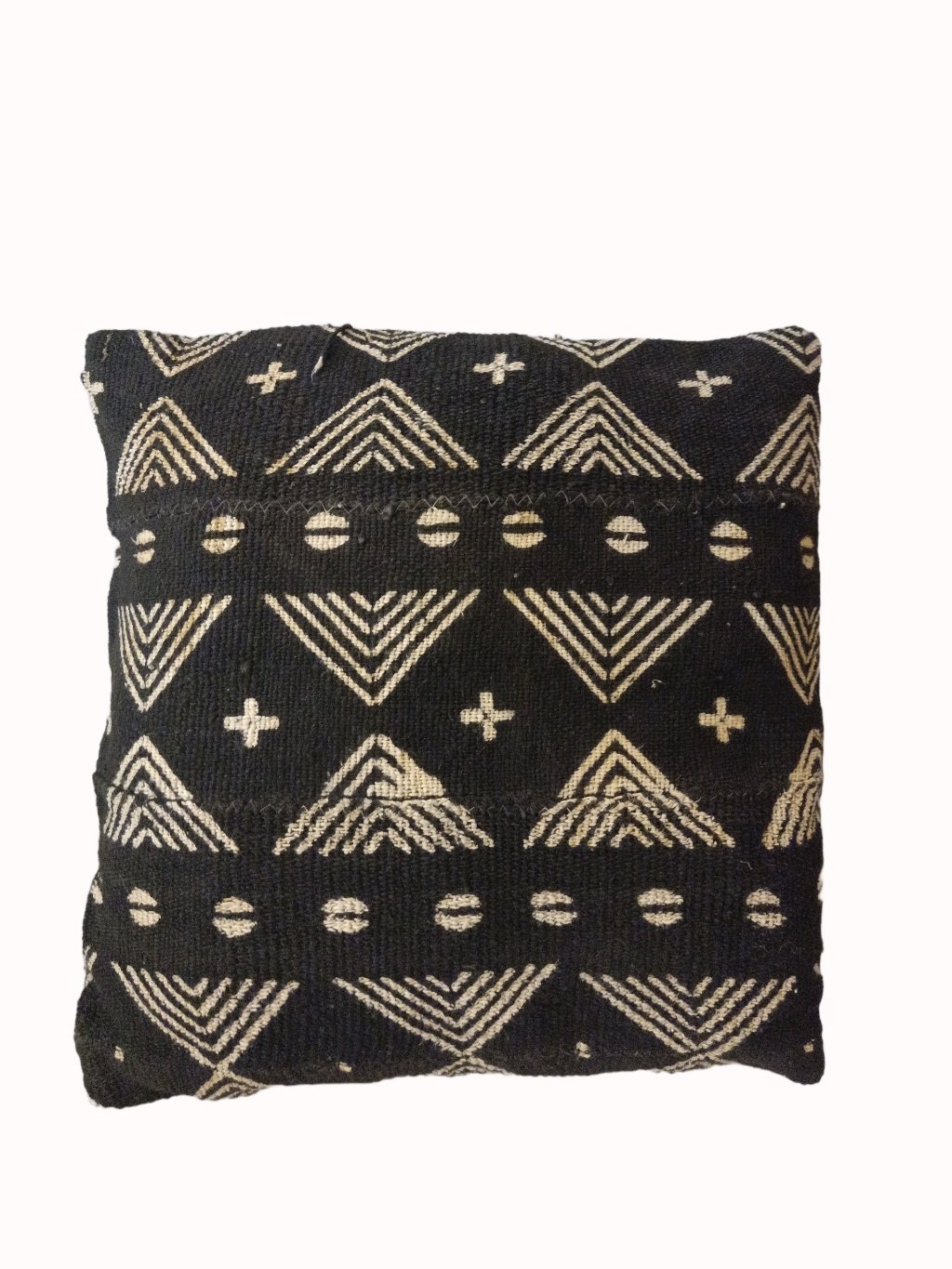 Housse de Coussin Bogolan Noir motifs blancs 1