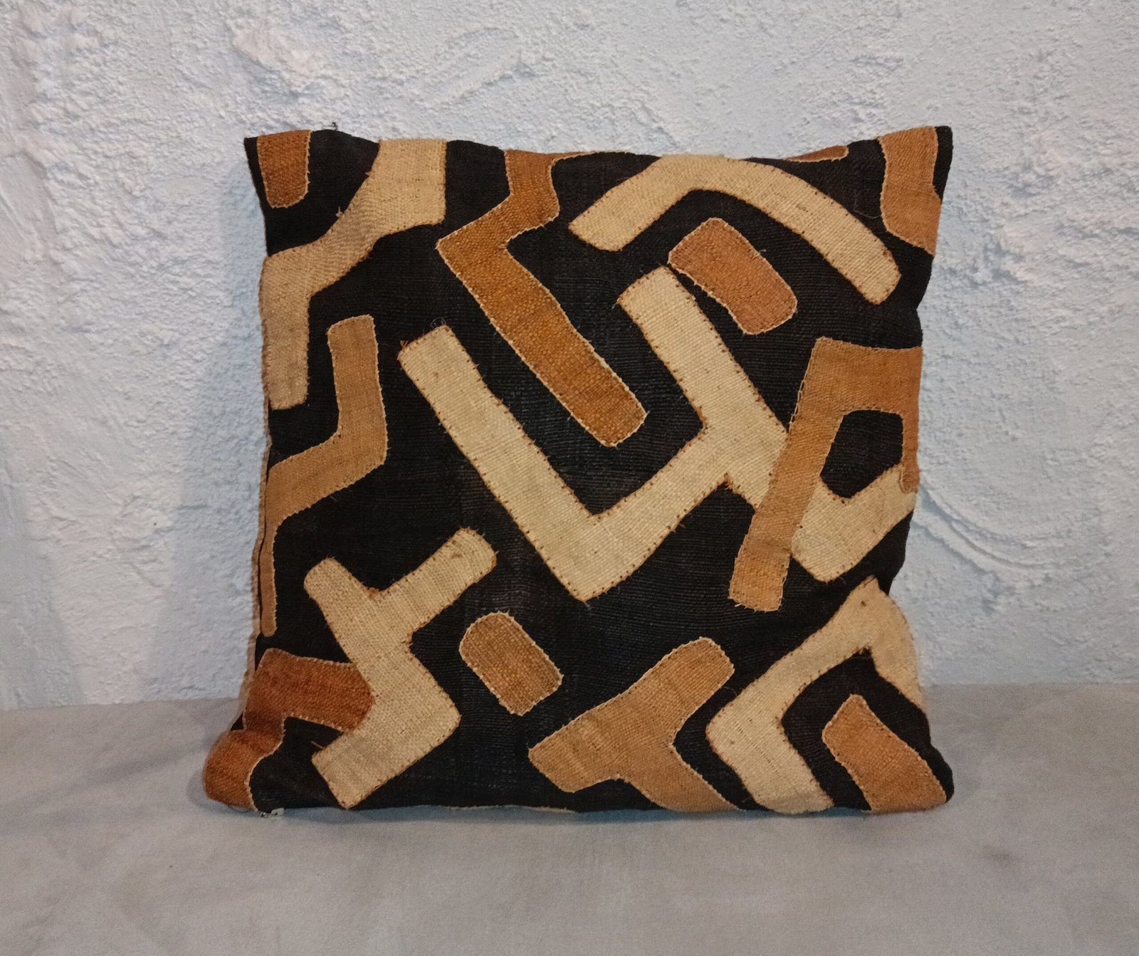 Aucune housse Kuba ne ressemble exactement à une autre. Les variations de motifs, de texture et de couleur témoignent de l’authenticité de l’artisanat. Chaque pièce est une œuvre unique, imprégnée du travail de l’artisan qui l’a réalisée.