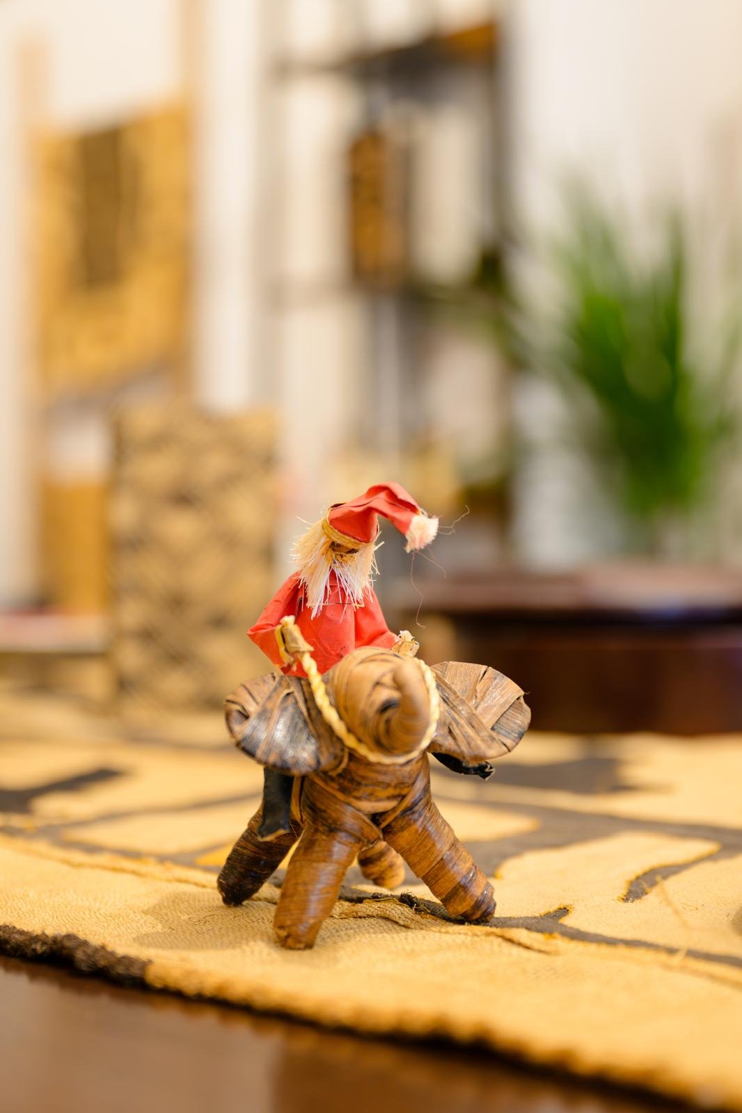 Ajoutez une note festive et originale à votre décoration de Noël avec notre charmant Père Noël chevauchant un éléphant sculpté en feuille de bananier. Cette pièce artisanale, réalisée avec soin, capture l’esprit joyeux des fêtes et apporte une touche d’exotisme à votre décor.