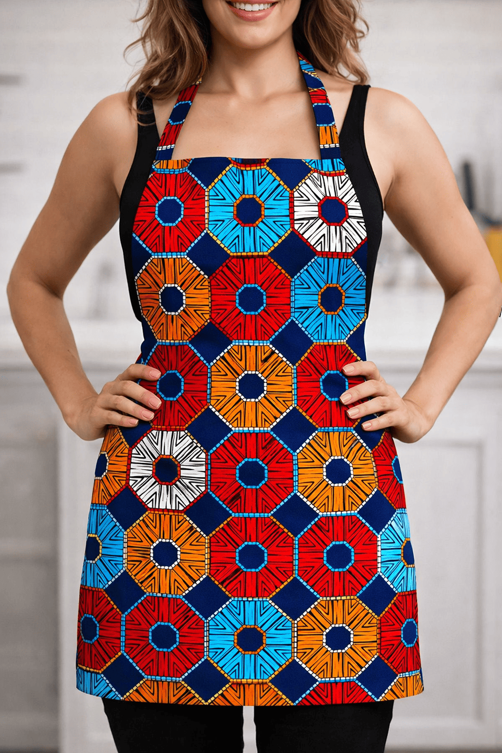 Les tabliers de cuisine personnalisés en tissu africain rendent vos moments culinaires encore plus agréables. Pratiques et esthétiques, ils apportent une touche décorative originale à votre cuisine.