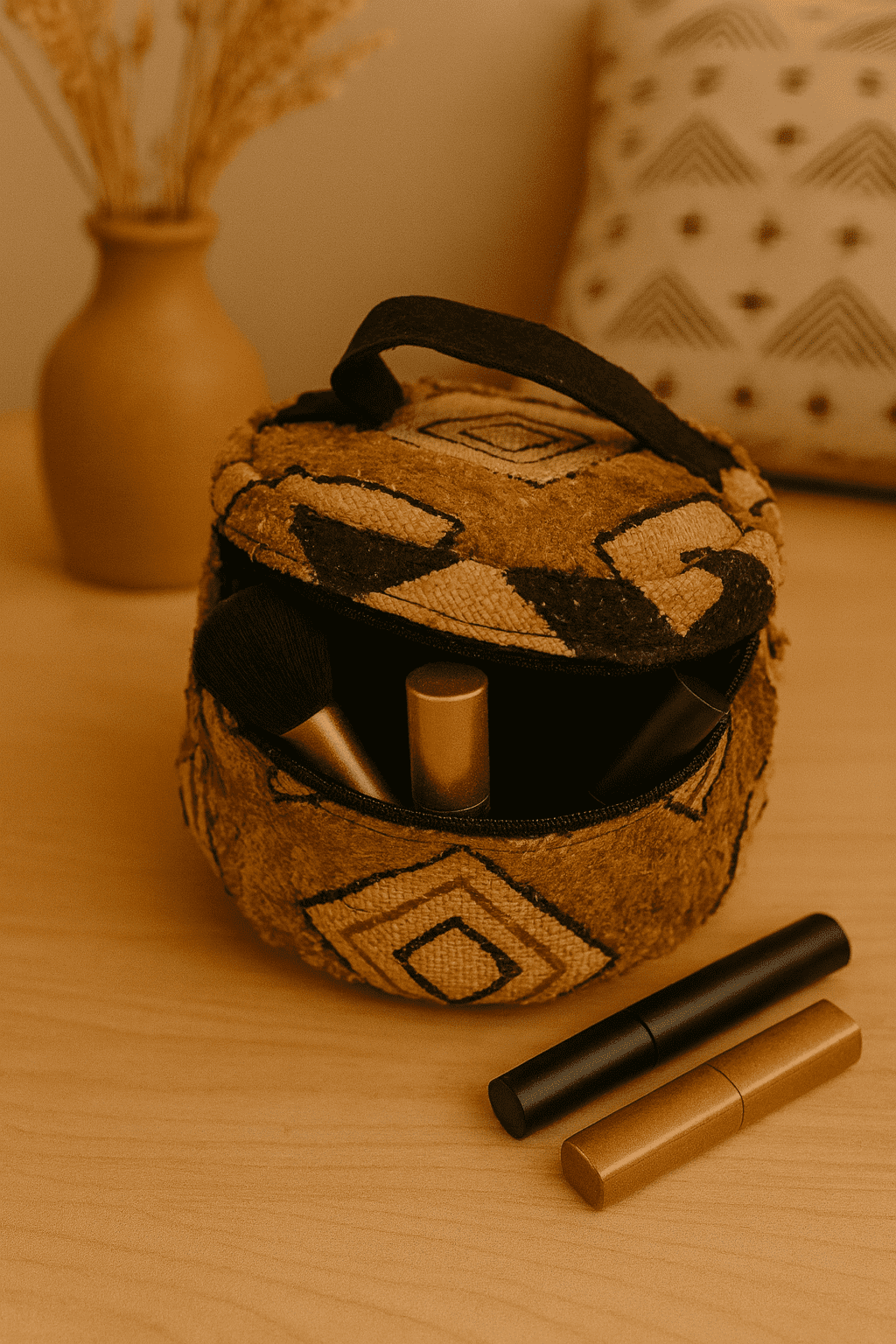 Trousse artisanale ronde en Tissus kuba 8